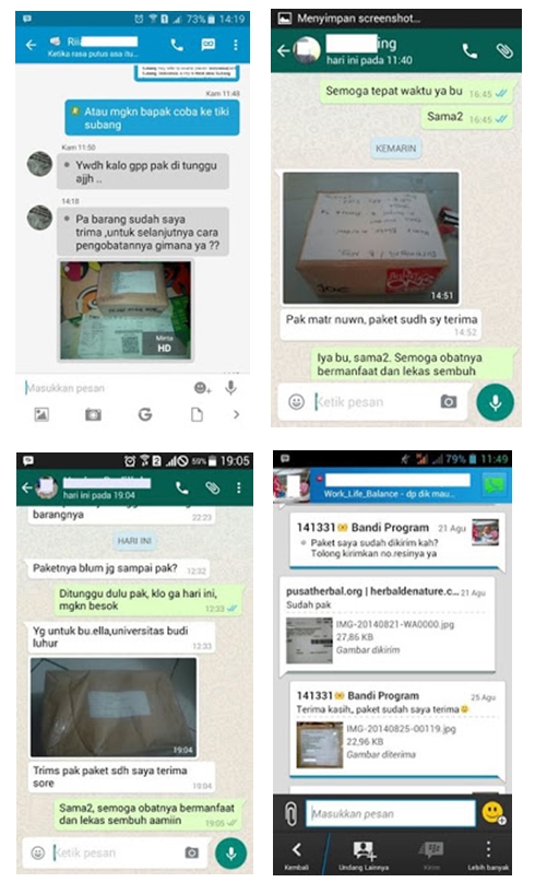 Berikut ini sebagian screnshot testimoni dari paket yang diterima oleh konsumen kami sebagai bahan pertimbangan anda
