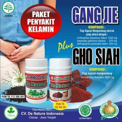 Harga Obat Gang Jie dan Gho Siah 1 paket yang isi 2 botol tersebut saat ini yaitu Rp. 295.000,-. Info lebih lengkap hubungi kami di nomor 081218654546 (Call/SMS/Whatsapp). GangJie GhoSiah merupakan produk herbal ekslusif dari PT. De Nature Indonesia. Kedua produk sudah benar-benar resmi terdaftar di BPOM, Gang Jie POM.TR 173 300 491 dan Gho Siah POM.TR 173 305 881. Gang Jie memiliki kandungan Orthosiphon stamineus folium, Imperatae cylindrica rhozoma, Andrographis paniculata folium. Dan Gho Siah mengandung Lumbricus rubellus.
